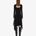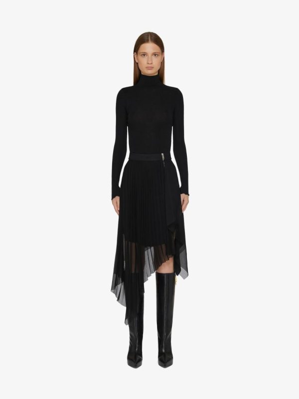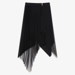 - Mid-length asymmetrical skirt in loose-fitting, lightweight synthetic crepe.