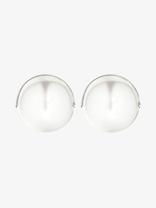 - Exquisite earrings featuring a lustrous white pearl paired with a sophisticated silvery metal backing.