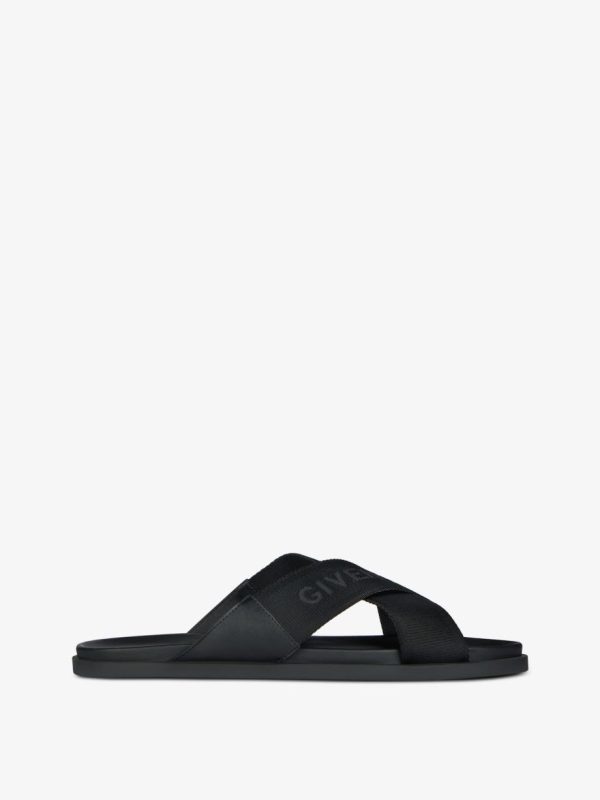 - Sophisticated flat sandals featuring GIVENCHY’s signature crossed webbing straps for a sleek, modern look