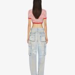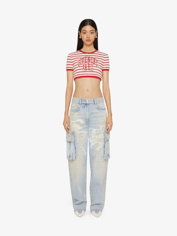 GIVENCHY Paris Cropped T-shirt In Cotton With Stripes White/red | Women Givenchy T-Shirts