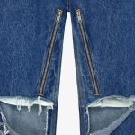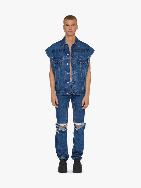 - Elevate your style with these straight fit destroyed denim trousers featuring authentic distressing details.