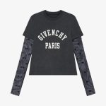 - Classic fit t-shirt in cotton with long sleeves in 4G plumetis transparent tulle.